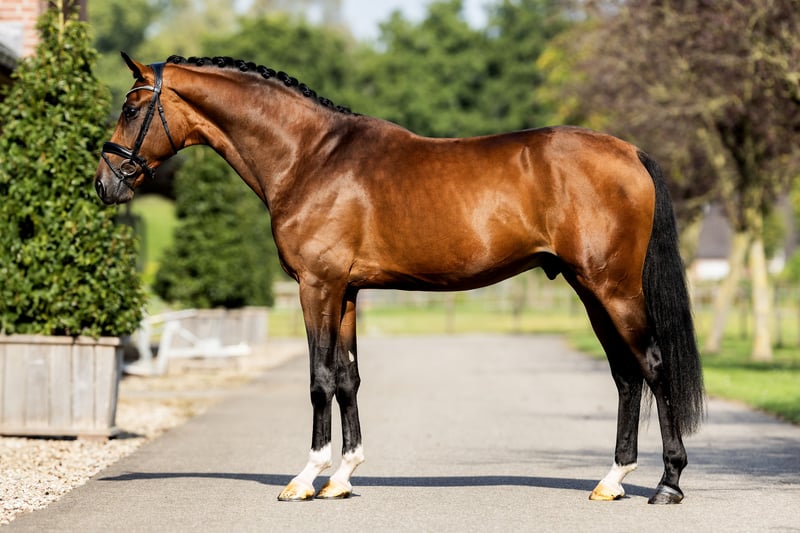 Przedstawiamy Romario, ogiera hodowli ujeżdżeniowej z 2021 roku Poznajcie Romario, oszałamiającego młodego ogiera urodzonego w czerwcu 2021 roku, łączącego wyjątkową krew z naturalnymi predyspozycjami do ujeżdżenia. Spłodzony przez słynnego Bondsa i pochodzący od klaczy Westpoint, Romario niesie dziedzictwo doskonałości na każdym kroku. Ten utalentowany koń jest chętny do pracy i wykazuje niezwykłe postępy z każdą sesją treningową. Dzięki swojemu słodkiemu, chętnemu do pracy charakterowi i zdolności do szybkiego uczenia się, Romario wykazuje ogromny potencjał, by osiągnąć najwyższy poziom ujeżdżenia. To prawdziwy klejnot, stanowiący idealną równowagę między elegancją, atletyzmem i temperamentem. Romario jest gotowy, by rozpocząć obiecującą karierę i z niecierpliwością czekamy na jego dalszy rozwój!