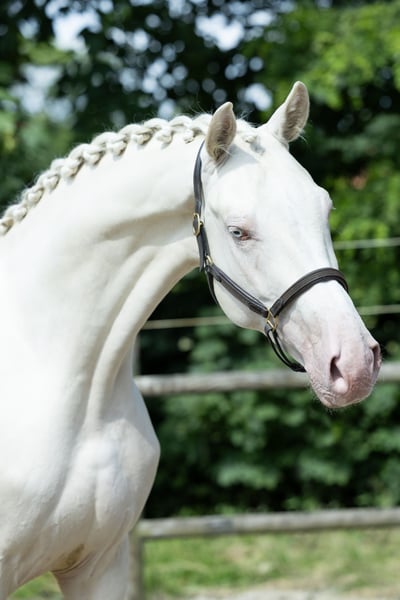 Very unique appearance. A very friendly stallion with a cooperative temperament. As a foal, he already received a first premium and stands out due to his beautiful and correct conformation. He has three good basic gaits and moves with great suppleness. Radiographically inspected.