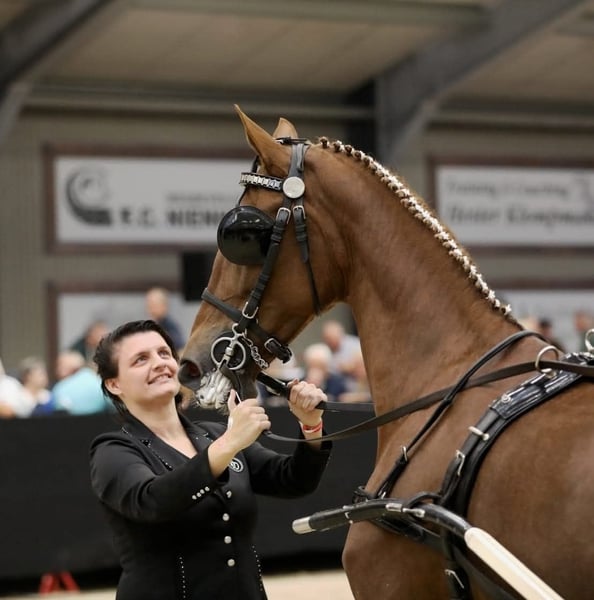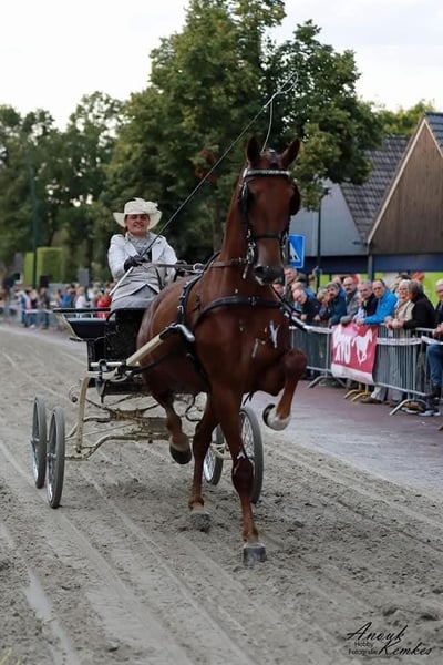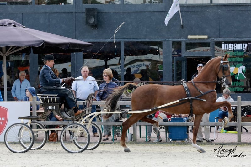 Na sprzedaż: klacz KWPN z predykatem Keur Cena: 6 000 € Lokalizacja: Chorwacja Klacz KWPN z predykatem Keur, doświadczona w prowadzeniu zarówno w pojedynkę, jak i w zaprzegu parowym. Jest w pełni zdrowa i w ciąży z ogierem KWPN. Kereda to spokojna, rzetelna i dobrze zrównoważona klacz, obecnie mieszkająca w systemie wolnostanowiskowym z trzema innymi końmi. Nie wykazuje dominacji w stadzie. Wysokość: 167 cm w kłębie. Posiada paszport i rodowód. Brała udział w kilku zawodach zaprzęgowych w Holandii. Możliwość wymiany: zainteresowany wymianą na karocę maratonową dla pary lub na ogiera KWPN Tuigpaard, kasztanowaty (brązowy), z czterema białymi nogami.