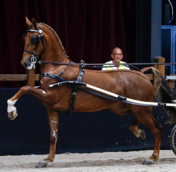 Zum Verkauf: KWPN-Stute mit Keur-Qualifikation Preis: 6.000 € Standort: Kroatien KWPN-Stute mit Keur-Qualifikation, erfahren im Einzel- und Gespannfahren. Sie ist vollkommen gesund und tragend von einem KWPN-Hengst. Kereda ist eine ruhige, zuverlässige und ausgeglichene Stute, die derzeit in einer Offenstallhaltung mit drei weiteren Pferden lebt. Innerhalb der Herde zeigt sie kein dominantes Verhalten. Größe: 1,67 m am Widerrist. Sie besitzt einen Pass sowie Abstammungsnachweis. Sie hat bereits an mehreren Gespannfahrwettbewerben in den Niederlanden teilgenommen. Tausch möglich: Interesse an einem Marathonwagen für ein Gespann oder an einem KWPN-Tuigpferd-Jungpferd, Fuchs (Braun), mit vier weißen Beinen.