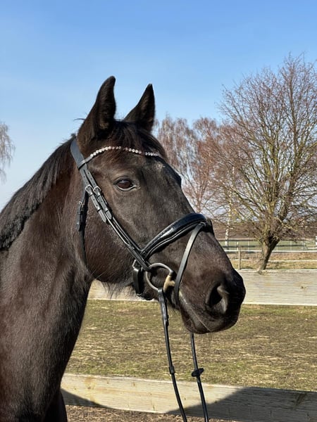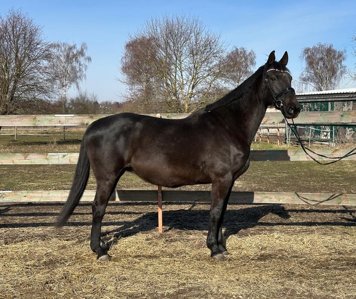 Wynton x Wellington Stute / Geb. 2009 / Rappe / 172 cm Geritten erfolgreich im Turniersport bis zur Klasse M. Danach sehr erfolgreich als Zuchtstute eingesetzt. Nachkommen von Millennium, Maracana, Fidelity, Morricone, Bon Vivaldi. Besonders das M Blut hat sich als sportliche und bewegungsstarke Nachzucht erwiesen. Eine absolute liebevolle und gute Mutterstute. Nimmt immer gut auf und fohlt super ab. Die Stute ist gesund und hat keine Unarten. Sie wird als Zuchtstute verkauft. Nur in beste Hände abzugeben. Wird nur verkauft wegen Bestandsverkleinerung. Bitte per WhatsApp melden.