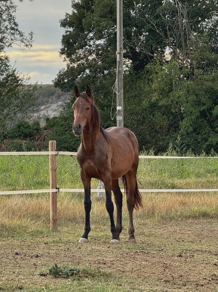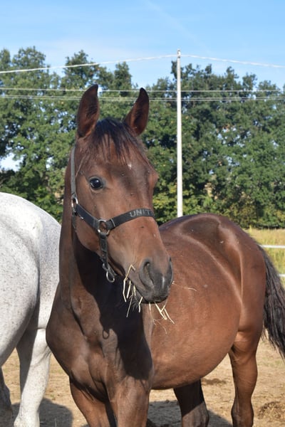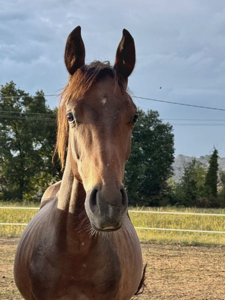 Come descrizione ottimo investimento per il futuro sia in campo sportivo che allevatoriale. Carattere docile e collaborativo, ma allo stesso tempo coraggioso. Abituata ad essere maneggiata, nessun problema con veterinario e pareggiatore; in ordine con vaccini e vermifughi. Visita clinica e lastre disponibili