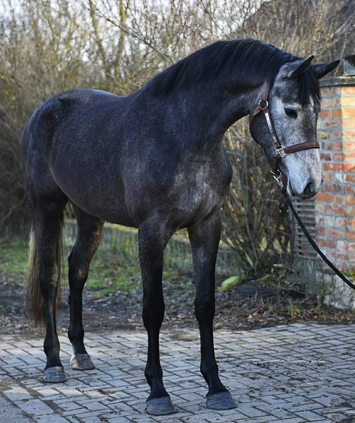 Piękna szara klacz o nowoczesnym typie sportowego konia i wybitnej linii skokowej. Łączy w sobie krew, sportową formę i wysoką jakość, co czyni ją bardzo interesującą kandydatką zarówno do sportu, jak i hodowli. Typ i budowa • Nowoczesny, elegancki model • Atrakcyjna szara maść • Dobrze osadzona szyja i mocna linia grzbietu • Proste nogi i zrównoważona sylwetka • Atletyczna budowa z silnymi zadami Ma przyjazny wyraz twarzy oraz naturalną równowagę i lekkość w ruchu. Charakter • Towarzyska i ciekawska • Łatwa w obsłudze • Dobrze wychowana i poprawnie rozwinięta Jakościowa młoda klacz z potencjałem na rozwinięcie kariery skoczka lub jako cenny element każdej hodowli. Tylko poważne zapytania. Więcej informacji, filmy i cena na życzenie.