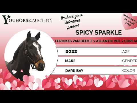 https://youhorse.auction/en/auction/Spicy-Sparkle-FEROMAS-VAN-BEEK-Z-x-ATLANTIC Unique opportunity A direct offspring of Feromas van Beek Z, competing at Global Tour / 1.60m level. A rare chance to secure modern top-sport genetics for both sport and breeding. Dark bay sport type with calm attitude and ease of use Spicy Sparkle is a dark bay, well-built horse with a calm temperament. A pleasant rideable type, suitable as an amateur horse and applicable to multiple disciplines. Correctly built with a level-headed mindset. Sire Feromas van Beek Z (Fantomas de Muze x Cerona van Beek) competes at 1.60m / Global Tour level and is approved with KWPN, BWP and AES. Through Fantomas de Muze and Sandro Boy, scope, reflexes and top-level performance are firmly anchored. Damline The dam is Ersina I VDL (Atlantic VDL), herself active in sport. Atlantic VDL competed internationally at 1.60m and is known for transmitting canter and attitude. The second dam Zersina (Corland) descends from an exceptionally strong performance family. This damline has produced numerous international showjumpers (1.30–1.60m) and approved stallions, including: – Alpha VDL (Corland), 1.60m – Rocksina (Corland), 1.60m – Guinness 107 (Corland), 1.50m – Light-Kohinoor (Cohinoor VDL), 1.55m, approved – Eleganto (Indoctro), 1.55m – Innocence (Zirocco Blue VDL), 1.55m – Cor de Pomme (Corland), 1.45m, approved – Multiple horses competing at 1.30–1.45m A deep, proven damline with consistent top-level sport across generations.