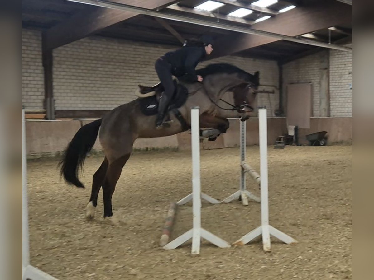 Very beautiful mare by Socrates vd Bosdam (Eras St. Hermelle) x Glennridge. From the same dam, there are already two successful jumping horses up to 1.50 m. Current height approximately 16.9 hh / 17.0 hh. She already jumps a small course and demonstrates a lot of talent. Also very pleasant to ride in dressage. Possesses three above-average gaits. A good veterinary certificate is available.