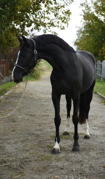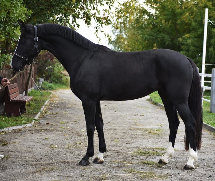 Four-year-old Black Mare — 170 cm — by Condios cc Z (Cornet x Diarado) out of Plot Blue Quick facts • Age: 4 years • Sex: Mare • Colour: Black • Height: 170 cm (approx. 16.3 hh) • Sire: Condios cc Z (Cornet x Diarado) • Dam: Plot Blue • Location: (add your preferred location) • Suitable for: sport prospects, showjumping, producing a performance foal Detailed description This elegant 4-year-old black mare is a very promising young sport horse with strong bloodlines and a scopey, athletic build. Standing at 170 cm, she combines an ideal competition height with balanced conformation, making her suitable for showjumping and sport breeding alike. Conformation and presence: She has a well-set neck, a straight topline and a powerful, well-muscled hindquarter that translates into uphill impulsion and natural scope over fences. Her legs are clean and correctly aligned with strong hooves — overall she presents as a modern sport type with attractive, classic lines and a calm, feminine expression. Movement: Her walk is ground-covering and attentive, the trot shows natural cadence with elasticity and uphill tendency, and the canter is three-tempered, roomy and honest — all qualities that point to future success in jumping and eventing. She carries herself with balance and ease, and shows good suspension and rhythm particularly in her trot. Jumping potential and temperament: Bred on performance lines (Condios cc Z — Cornet × Diarado influence), she demonstrates natural scope, carefulness, and a brave, willing attitude toward fences. She approaches jumps with good technique and uses her neck and hind end well. Her temperament is sensible and trainable: curious but not spooky, intelligent, and keen to learn. She’s easy to handle on the ground — stands quietly for grooming, tacking and farrier — and travels calmly. Training & education: Lightly backed and started under saddle with correct basics, she’s been introduced to poles and small grids and shows a steady, progressive learning curve. She responds well to a sympathetic, consistent rider and has already shown trust and confidence in new situations. (If you want the description to state specific training milestones or number of ridden months, tell me and I’ll add exact details.) Health & vet: Up to date on routine care, regularly wormed and farrier-trimmed/shod. No known soundness issues. Clean vet history (include passport, vaccination and any vet paperwork you have). Ready for a full pre-purchase vet check. Breeding & bloodlines: Sired by Condios cc Z, with Cornet and Diarado in the immediate pedigree, she carries direct influence from established jumping lines — a mix that often produces technique, scope and rideability. Her dam, Plot Blue, contributes size and substance. This combination makes her interesting both as a young competition prospect and a broodmare for producing future performance offspring. Ideal owner / competition plan • Amateur riders looking to produce a careful, reliable FEI prospect. • Professional riders or yards searching for a young horse to bring on for 1.30m+ classes. • Breeders who want a modern performance mare with strong sire lines. Why she stands out • Modern sport type at a competition-ready height (170 cm). • Excellent uphill canter and natural scope for jumping. • Trainable, level-headed temperament and easy to handle. • Attractive pedigree with Condios cc Z (Cornet × Diarado) influence. Sale terms & contact Price and sale terms available on request. She will be sold with passport and routine vet documentation. Available to view by appointment — happy to provide additional photos, video of flatwork and jumping, and arrange a vet check. Contact: (add your phone / email / WhatsApp here) ⸻ If you like, I can: • Tailor this text for a classified ad (shorter) or a web-page listing (longer with bullet sections). • Add a competition résumé or a rider testimonial section.