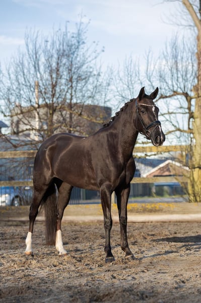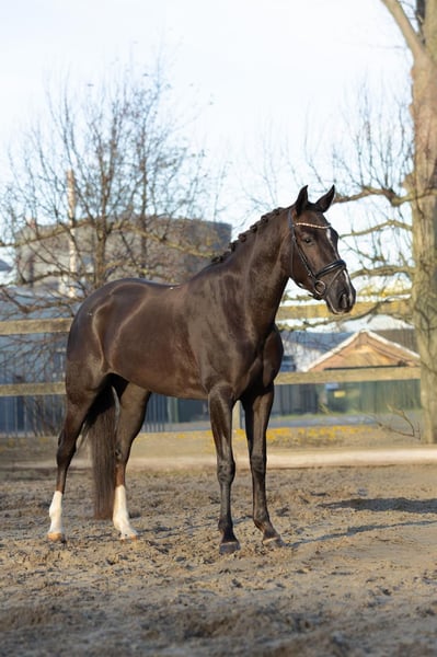 PRE meets KWPN with a Big Heart This 5-year-old mare (approximately 15.2 hh) combines the best of two worlds: Spanish calmness meets sportive openness. A dark chestnut with an honest expression, a calm temperament, and a character that immediately inspires trust. She is very well-behaved, balanced, and absolutely kid-friendly – a true E-Pony with top-quality conformation and movement. Whether in daily handling or under saddle: 👉 straightforward 👉 confident 👉 pleasantly calm Perfect for children, teenagers, or smaller adults seeking a safe, loving, and reliable horse.