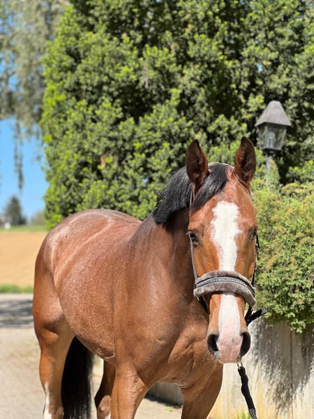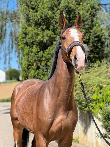 Incredibly pretty 6yo mare for top showjumping level. With some training she could also be suitable for the Equitation or Hunter ring. She is super brave and easy to ride, has 3 very nice gaits and a very powerful and scopey jump. She already proved her outstanding jumping abilities with wins in Youngster classes on shows. Height is around 16.1hh, she is a real sweetheart in handling. More photos and videos available on request.