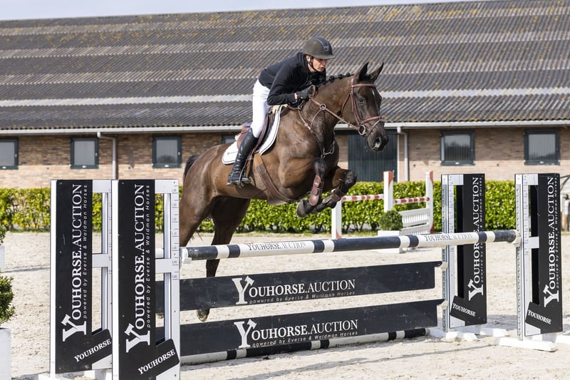 Passieniki is a well-built, modern type horse with a lot of balance. She is easy to ride, has a good character and does everything with ease. She has a good canter and jumps with a nice technique. Over the jump she shows a strong hindleg technique, is quick off the ground and jumps with ease and quality. A light-footed horse that gives confidence. She had a foal as a young horse and has now been under saddle for about half a year. Although still relatively green, she already has experience at 1.00m level and shows a very good attitude. A horse that is easy to continue with and develop further. Sire I’m Special de Muze competed at 1.50m level and is a son of Emerald van ’t Ruytershof (1.60m) from the famous Qerly Chin line, known for top-level performance. Dam Harmoniki is a daughter of Bodinus (1.20m) and comes from a strong sport family. Granddam Viawiki (1.30m) produced several sport horses: Connection (1.60m) Houdini (1.45m) Estador (1.45m) Flying L’Amuse Uitgeest (1.35m) Graniki (1.30m) multiple horses at 1.30m level Behind that stands Kiwiki, a proven foundation mare with multiple sport horses, underlining the strength of this line. A family with proven performance and a strong base. This horse was previously auctioned, but due to the buyer failing to meet their obligations, payment was not completed. The horse fully matches its description. A new opportunity — perhaps this time for you.