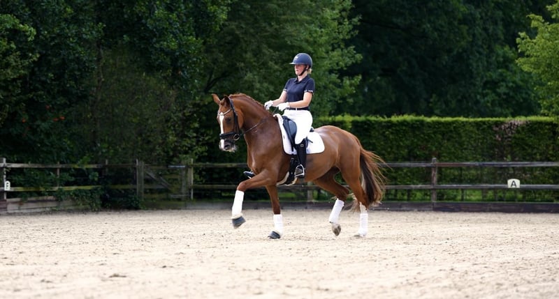 Posh est une jument alezane de cinq ans, fille de Valverde x Sezuan x Jazz. Elle provient d'une lignée d'élevage réputée d'Emmy de Jeu, connue pour l'élevage de chevaux de qualité et fiables. Sa grand-mère participe actuellement au niveau international en Grand Prix. Cette jument de cinq ans possède trois belles allures et un caractère agréable et sans complications. En main, elle est amicale et facile, et sous la selle, elle a beaucoup d'énergie et de volonté de travailler. Cela en fait un cheval plaisant et motivé à entraîner. Elle convient à un cavalier professionnel, mais aussi à un amateur ou à une transition de poney à cheval. Elle se comporte de la même manière sur un terrain étranger que chez elle. Posh est actuellement présentée avec succès dans la classe M1, où elle obtient régulièrement des scores élevés au-dessus de 65 %. Lors de l'inspection des juments à quatre ans, elle s'est déjà distinguée avec un score de 75 points pour le type et 80 points pour le mouvement, ce qui lui a permis de devenir la meilleure jument de la session d'inspection et d'obtenir le titre STER. Posh a récemment été approuvée cliniquement et radiologiquement (juin 2025). En résumé : une jeune jument talentueuse avec un excellent caractère et des performances prouvées, prête à continuer à progresser dans le sport ! Intéressé ? Contactez-nous pour plus d'informations ! La cavalière sur la vidéo et la photo mesure 1,74 m.