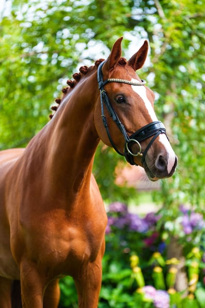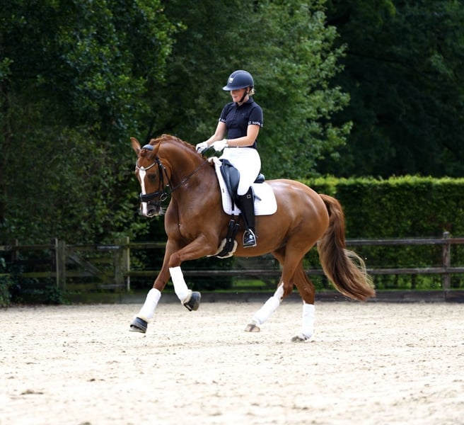 Posh ist eine fünfjährige Fuchs-Stute von Valverde x Sezuan x Jazz. Sie stammt aus einer bekannten Zuchtlinie von Emmy de Jeu, die für die Zucht qualitativ hochwertiger und zuverlässiger Pferde bekannt ist. Ihre Großmutter läuft derzeit international Grand Prix. Diese fünfjährige Stute hat drei wunderschöne Gänge und einen angenehmen, unkomplizierten Charakter. Im Umgang ist sie freundlich und leicht, unter dem Sattel hat sie viel „Go“ und Arbeitswillen. Dies macht sie zu einem angenehmen und motivierten Pferd zum Trainieren. Sie ist auf fremdem Terrain genauso gut zu reiten wie zu Hause. Posh wird derzeit erfolgreich in der Klasse M1 vorgestellt, wo sie regelmäßig hohe Noten über 65 % erzielt. Bei der Stutenschau als vierjährige Stute fiel sie bereits mit einer Note von 75 Punkten für Exterieur und 80 Punkten für Bewegung auf, womit sie die beste Stute der Vorführungsrunde wurde und das STER-Prädikat erhielt. Kurz gesagt: eine junge, talentierte Stute mit einem Top-Charakter und nachgewiesenen Leistungen, die bereit ist, in der Sport weiter zu wachsen! Interesse? Kontaktieren Sie uns für weitere Informationen! Die Amazone im Video und auf dem Foto ist 1,74 m groß.