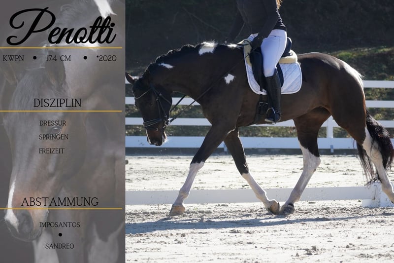 Penotti is a 6-year-old KWPN mare, approximately 17.4 hands, sired by Imposantos out of Krack C x Sandreo, Sandro Hit, Samber. Words cannot fully describe this exceptional horse. Beautiful, well-trained, rideable, and the coolest mare you could ever find. She is suitable for both advanced riders and complete beginners or nervous riders. She has three very good gaits, is already competing successfully up to Level 1 in the Netherlands, and handles everything with ease. Trail riding alone or in groups, as well as in unfamiliar environments, is no problem. She is relaxed on the lunge, on busy roads, and even when planning. Penotti also enjoys pole work and has already happily jumped over logs. She is very rideable and moves willingly with her rider. We would confidently place any child on her. She is unfazed by loud noises, such as jackhammers, and nothing seems to bother her—truly the coolest mare. With expressive movement and appearance, combined with a character that couldn’t be better, she is a true eye-catcher! BE SURE TO WATCH HER VIDEO!!! A high-quality horse with potential for sport from every perspective, and equally reliable as a trustworthy partner for nervous riders. She is affectionate and uncomplicated in handling, neither stubborn nor difficult when ridden or handled. An almost impossible-to-find dream horse. She already comes with a current health certificate (AKU). You can find her current video in the listing or at the following link: https://www.youtube.com/watch?v=9fnfiMG4fGM Horse Trading Dederichs – Your Partner for Horse Buying Contact & Availability: Inquiries only by phone at 0173/9792139 Monday – Friday: 09:00 – 18:00 Saturday: 09:00 – 15:00 Sunday: Closed Follow us on social media! Experience our daily work with sale horses on Instagram, TikTok & Facebook under Pferdehandlung Dederichs Discount: Immediate purchase of your new dream horse grants you a 5%–10% discount. Trial Riding & Demonstration: • Trial ride: €40 per horse (up to 2 riders), fee credited upon purchase • Holidays: Trial ride €50 • Demonstration by our trainers: €30 per horse (including ground work and riding) Pre-Purchase Examination & Transport: • Many of our horses already have a recent AKU • You are welcome to bring your own veterinarian • We can organize a pre-purchase examination • We also assist with transport to your new home Other Horses for Sale: We have additional horses for sale in our stable that are not yet listed online. If your dream horse is not yet among them, please contact us. Important Notes: • Estimated height measurements are approximate and not precisely measured • All descriptions are subjective assessments by the seller and do not constitute guaranteed properties