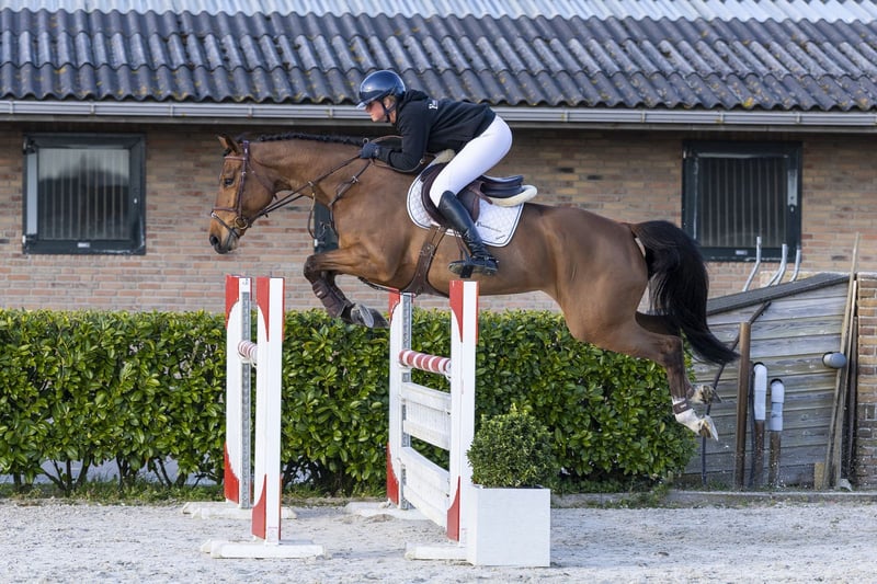 Oh Yeah A Little Peachy is an easy-to-ride amateur horse with a good attitude and a pleasant character. He is light-footed, has a nice canter and an easy trot, making him comfortable to ride. He is well built, has enough blood and is easy to work with. Over the jump he is quick off the ground, careful and shows a very good hindleg technique. A smart horse that thinks along and easily finds the fences. He has experience at 1.10m level. A horse that does everything with ease and will develop further towards higher levels. An ideal amateur horse with many possibilities. Sire Ad A Big Boy competed at 1.60m level and is a son of Kannan (1.60m), one of the most influential sires in showjumping. Dam Peachtree competed at 1.30m level and is a daughter of Clinton (1.60m), known for passing on scope and technique. The damline produces several sport horses: Zeldzaam (1.45m) Elliot van ’t Hooghemelrijk (1.45m) Odille VLS (1.45m) Magnum (1.40m) Get The Picture (1.40m) Unette L (1.40m) multiple horses at 1.30m–1.40m level A family with proven sport performance.