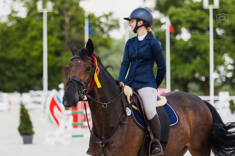 Very beautiful 8-year-old KWPN mare. Noble, very correct, good in all three gaits. In show jumping, she is careful, precise, and does not want to make mistakes. Competed up to 140cm under a professional, and up to 130cm under a junior. A good horse for moving up to higher competitions. She has no issues in handling, grooming, transport, or at competitions. She is safe. TÜV from 2024 - without any faults.