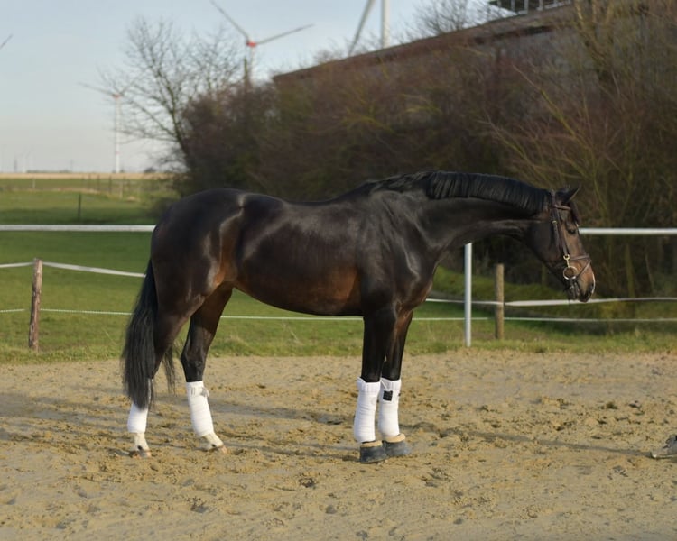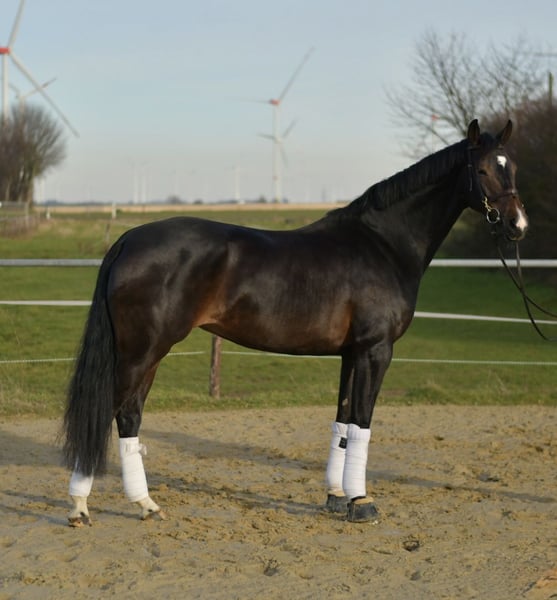 Discover our stunning dark bay KWPN mare born in 2017 – a true gem that will win your heart instantly! With an impressive height of approximately 16.1 hh and a compact build, she is not only a striking eye-catcher but also an ideal choice for riders transitioning from other disciplines. Her three beautiful basic gaits are the result of natural talent and training, making her a perfect partner for both beginners and advanced riders. This mare has a big heart and is incredibly comfortable to ride, providing pure enjoyment both in the saddle and during ground work. Her sensitive and affectionate nature makes her the perfect cuddle horse, always wanting to be close to her handler. She is not only a valuable addition to your stable but also a loyal companion. ### **Special Offer:** Secure a **5% discount** on the purchase price with immediate pickup! ### **Test Ride Opportunity:** Take advantage of the chance to test our horse for one week! This trial period can be supervised by experienced trainers. You will have the opportunity to combine riding lessons and testing sessions. Please note that a trial fee applies, which is not deducted from the purchase price. ### **Trial Riding:** Would you like to meet the mare in person? We are happy to arrange a viewing and trial ride. The cost for a pre-ride or trial session is €30 per person. Don’t hesitate to contact us for more information or to schedule an appointment. You won’t want to miss this unique opportunity!