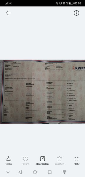 Zum Verkauf steht hier eine ganz tolle Stute! Aufgrund Veränderungen im Pensionstall überlege ich meine 9 jährige KWPN Stute zum Verkauf anzubieten. Es ist kein Not Verkauf und die Stute wird nur an Bestplatz abgegeben! Es wäre auch ein zur Verfügung stellen als Zuchtstute denkbar. Gerne auch ab März erst. Die Stute wurde in Karpfham geehrt als Reservesiegerstute. Tolle Bewegungen u super Abstammung. Leider hat sie KS Befunde die sie 3 jährig nicht hatte und vor drei Jahren auch Probleme mit Hufgelenk. Ich gehe leider davon aus, dass sie mal einen schweren Sturz auf der Weide hatte. Beim Kauf dreijährig Tüv o. B. Im Umgang liebstes Schmusepferd und auch beim Reiten sehr brav, aber kein Selbstläufer. Nicht Anfänger geeignet! Im Gelände mit Zweitpferd absolut sicher, alleine braucht sie klare Ansage u Vertrauen und bei bekannten Wegen geht sie auch da sehr brav. Autos, Traktoren kein Problem. Geht allein in den Anhänger. Schmiedefrom. Vierfach beschlagen u vorne benötigt sie Lederplatte mit einfacher Hanffüllung. Seit dem keinerlei Probleme mit Hufgelenk. Wurde in Klinik behandelt weiteres per PN. (drei Jahre lahmfrei) Ein mehrmaliges kennenlernen erwünscht. Reiter Nivea mind A. Sie wird aktuell voll geritten! Sattel der erst vor ein paar Wochen gekauft wurde, wäre gegen Aufpreis dabei (seit dem keinerlei Probleme mit Rücken) weiters gerne im persönlichen Gespräch. Keine Turnier Vorstellung weil ich da kein Interesse hatte. Eintragung vorhanden. Keine Turnierpfeimpfung aber regelmäßig Tetanus und Influenza. PSSM negativ gestet! Auch Op Versicherung die übernommen werden könnte. (R&V premium) Wie gesagt sie geht nur an Bestplatz! Weitere Videos auf Anfrage verfügbar Sämtliches Zubehör natürlich vorhanden und Preis VB. Es geht mir nichts ums Geld. Will einfach einen schönen Platz für sie finden