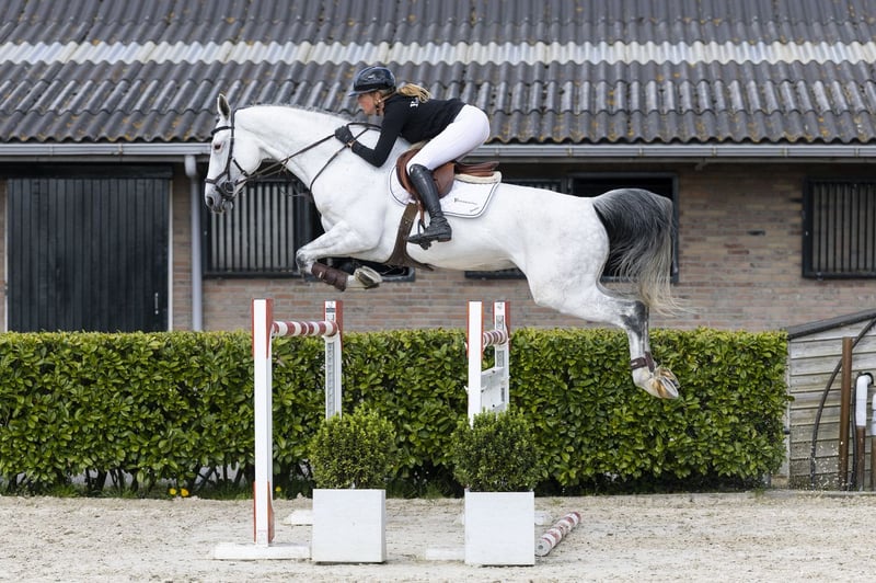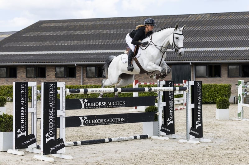 Grey mare with experience up to 1.45m level. Attractive horse with plenty of scope, a good canter and takes the rider well to the jump. Makes a positive first impression with his presence and appearance. Well-behaved with a good attitude, enough blood and not spooky at all. Reliable in handling and under saddle. Has a well-balanced canter with easy changes. Light-footed towards the jump. In the contact sometimes a bit unsettled and can lightly shake his head, something to take into account. Over the jump he shows a lot of scope, is quick off the ground and sufficiently careful. Overall a horse with plenty of quality and a good way of jumping. Suitable for a competitive amateur or professional who can ride through the points of attention and use his qualities. Stepping up to 1.40m level with an amateur rider, she showed plenty of scope and quality during the try-out here at Stal Everse. Sire Zirocco Blue VDL competed at 1.60m level and belongs to the absolute top sires. He has produced a large number of international top horses at 1.60m–1.70m level and is known for passing on scope, attitude and technique. Dam The dam Escada-O is a daughter of Padinus (1.30m) and comes from a proven sport line with multiple horses at level. Damline The damline is strong and well developed. From the direct line we see among others La Dame VG at 1.40m level. Furthermore, we see several horses such as Cool Boy O (1.35m) and Gambit-O (1.35m). In the second line we find Klavour J at 1.45m level. The line shows a consistent production of sport horses from 1.30m up to 1.45m level.