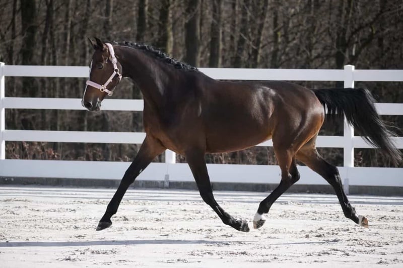 Mary Lou est une jument KWPN née en 2017, mesurant 1,72 m, sired by Spielberg, Sandro Hit, Rubinstein x Chippendale, Zhivago. *Mary Lou* est une magnifique jument expressive et pleine de tempérament, dotée de trois très bonnes allures. C’est un cheval absolument gentil et courageux, facile à manipuler. Elle se montre très détendue face aux stimuli environnementaux. Elle a obtenu le label Prok. Une vidéo récente est disponible dans l’annonce. Son prix est attractif, car elle doit à nouveau être remise en route. Il n’est pas possible de faire une séance d’essai. Un cheval de rêve au look superbe, avec un bon caractère et de belles allures. Très câline. Une vidéo récente est disponible dans l’annonce. Écurie Dederichs – votre partenaire pour l’achat de chevaux Contact & disponibilité : Les demandes doivent exclusivement être faites par téléphone au 0173/9792139. Lundi – Vendredi : 09h00 – 18h00 Samedi : 09h00 – 15h00 Dimanche : jour de repos Suivez-nous sur les réseaux sociaux ! Vivez notre quotidien avec nos chevaux à vendre sur Instagram, TikTok & Facebook via Écurie Dederichs. Remise : Pour toute prise en charge immédiate de votre nouveau cheval de rêve, bénéficiez d’une remise de 5 % à 10 %. Essais et présentations : • Essai : 40 € par cheval (max. 2 cavaliers), déduit en cas d’achat • Jours fériés : essai à 50 € • Présentation par nos cavaliers : 30 € par cheval (montée en main, travail à pied, etc.) Examen préalable et transport : • Beaucoup de nos chevaux disposent déjà d’un examen vétérinaire préalable (AKU) • Vous pouvez bien entendu faire venir votre propre vétérinaire • Nous organisons volontiers un examen préalable • Nous vous aidons également avec le transport vers votre nouvelle résidence Autres chevaux à vendre : D’autres chevaux à vendre sont disponibles dans notre élevage, mais ne sont pas encore en ligne. Si votre cheval de rêve n’est pas encore listé, n’hésitez pas à nous contacter. Informations importantes : • Les tailles approximatives sont estimées et non mesurées avec précision • Toutes les descriptions sont des appréciations subjectives du vendeur et ne constituent pas des garanties.