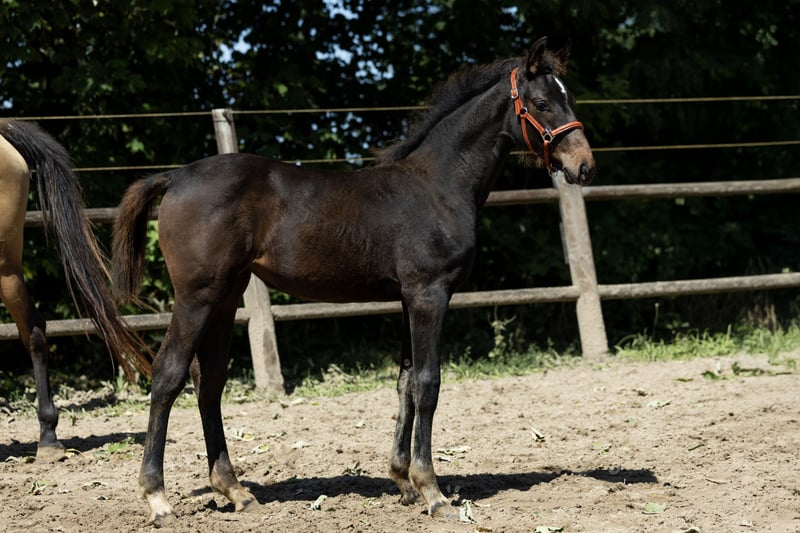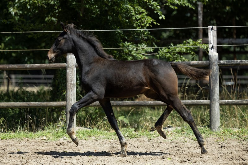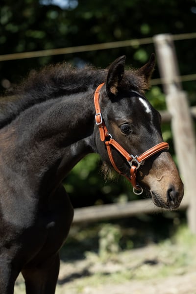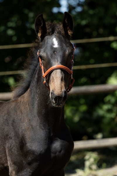 Very strong filly with beautiful proven bloodlines for top-level work. Her sire, Ravel, competed multiple times at the Olympic Games, and on her dam's side, we see Jazz and Ulft. Three good gaits with plenty of expression and balance. The foal was born in March and has recently been weaned. She is social in her interactions and walks nicely on a halter.