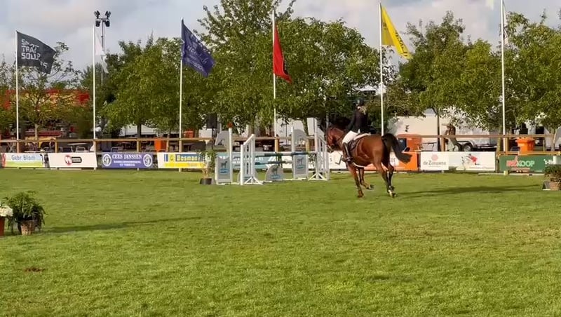 Who will be the lucky one to take home this handsome gelding? Daantje is an exceptionally attractive horse with a golden character. Until two years ago, he successfully competed up to 1.20–1.25m. Due to the owner’s professional circumstances, he has not been active in sport since then and was only ridden at home by a young girl. For the past two months, however, he has been back in full training and is picking everything up very well. He has already competed again, and it is a real pleasure to have him at shows. He always tries his best for his rider, and even when the distance is not ideal, he does everything he can to get his rider safely to the other side. Thanks to his excellent mentality, he could also be the perfect partner for a younger rider. In the stable, Daantje is a true people’s horse – always cheerful and eager for a cuddle or a treat.