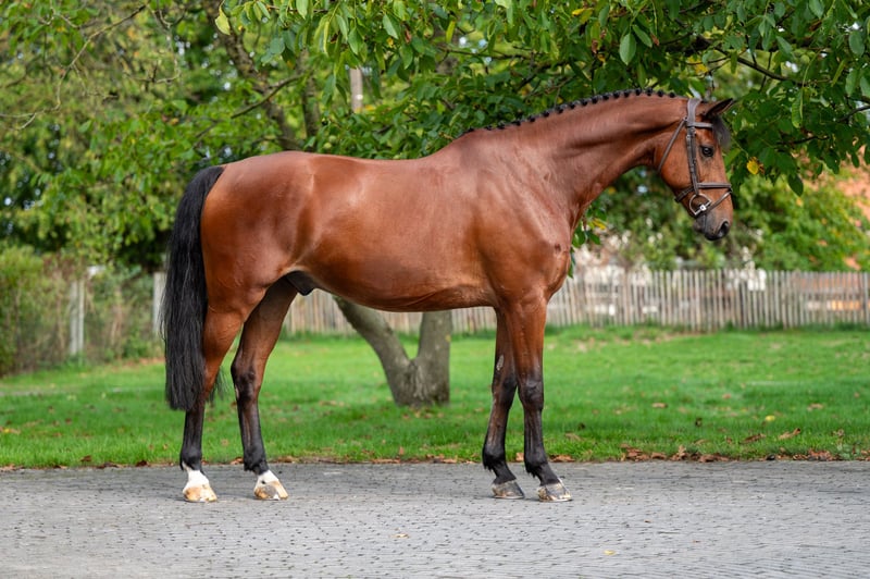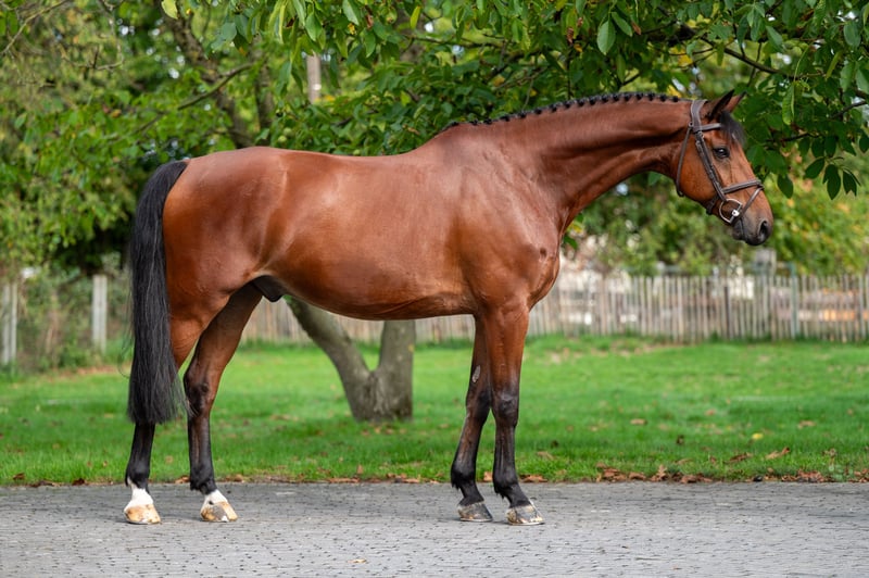Qui sera l’heureux propriétaire de ce superbe hongre ? Daantje est un cheval particulièrement élégant avec un caractère en or. Jusqu’il y a deux ans, il concourait avec succès jusqu’à 1,20–1,25 m. En raison de la situation professionnelle de son propriétaire, il n’a plus été engagé en compétition depuis et n’a été monté qu’à la maison par une jeune fille. Depuis deux mois, il est de retour à l’entraînement régulier et reprend tout avec beaucoup de facilité. Il a déjà repris la compétition, et c’est un vrai plaisir de l’emmener en concours. Toujours prêt à donner le meilleur de lui-même pour son cavalier, il met tout en œuvre pour franchir l’obstacle en sécurité, même si la distance n’est pas parfaite. Grâce à sa gentillesse et son attitude positive, il conviendrait aussi parfaitement à un cavalier plus jeune. À l’écurie, Daantje est un véritable ami pour tous – toujours joyeux et en quête d’une caresse ou d’une friandise.