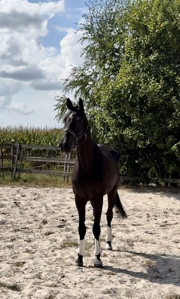 Our Kay is looking for a new home with someone who can help him rebuild from scratch. He has been with one person almost his entire life and has spent years in training… but that was too much for him! With a bit of bit and bridle, lots of pressure, and little relaxation, that is not what Kay needs anymore. Kay is a barn favorite, friendly to everyone and everything. He hasn’t been ridden for quite some time due to the lack of a suitable rider. He’s not a bad horse at all, but he is sensitive to aids and a bit uncertain. I am looking for a place where he can just be a horse, where someone takes the time for him, and where he can gradually get back into work at his own pace! A strong, healthy, and sweet horse!