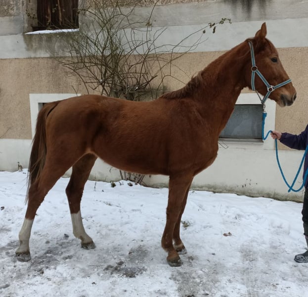 This colorful mare is just about to start her career as a riding horse and has everything needed for a successful start. She is very relaxed in daily handling, familiar with leading, tying, hoof handling, grooming, and has no bad habits. In a mixed herd, she ranks in the middle and is accustomed to both box and open stable management. Anyone wishing to train this gem themselves and secure the price has until February 15, 2026, to do so. After that, the price will increase with her training progress. - Transport and pre-purchase exam (AKU) available upon agreement. - X-ray examination (TÜV) possible, but costs are to be covered by the buyer. - Equipment can be purchased additionally. - Further accommodation with training can be negotiated.
