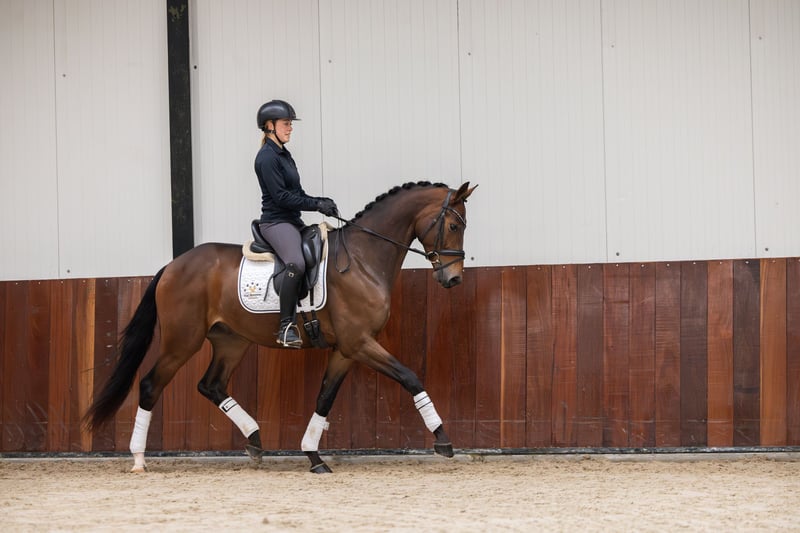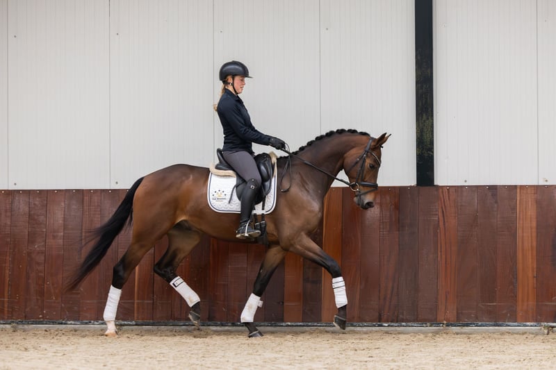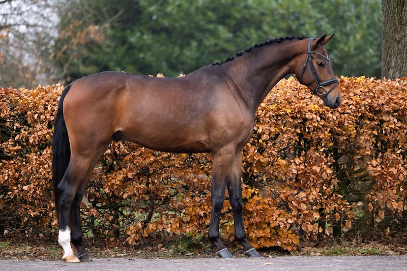 𝗦𝘁𝗮𝗻𝗹𝗲𝘆 𝗦𝗕 is an eye-catching 2022 gelding with a modern, sport-oriented pedigree. With an estimated height of approx. 1.65 m, he combines performance genetics with a strong foundation for the future. 𝗣𝗲𝗱𝗶𝗴𝗿𝗲𝗲 𝗡𝗼𝘃𝗶𝗮𝗻 𝘅 𝗡𝗮𝗱𝗶𝗻𝗲 (𝗜𝗻𝗰𝗼𝗴𝗻𝗶𝘁𝗼 𝘅 𝗢𝘀𝗰𝗮𝗿 𝘅 𝗔𝗺𝗶𝗱𝗼𝘂) On the sire line we see Novian, competing at ZZ-Zwaar level, descending from the Grand Prix sire Apache. On the dam line stands Nadine, a daughter of Incognito, followed by Oscar and Amidou. 𝗦𝘁𝗿𝗼𝗻𝗴 𝗱𝗮𝗺𝗹𝗶𝗻𝗲 Stanley SB’s damline is clearly performance proven. From this family also comes the Grand Prix horse Elian Royale (Johnson), successfully ridden by Erin Nichols — a strong confirmation of the quality and potential rooted in this line. In short: Stanley SB combines a modern dressage sire line with a proven maternal family, offering a solid basis for a promising sport career.