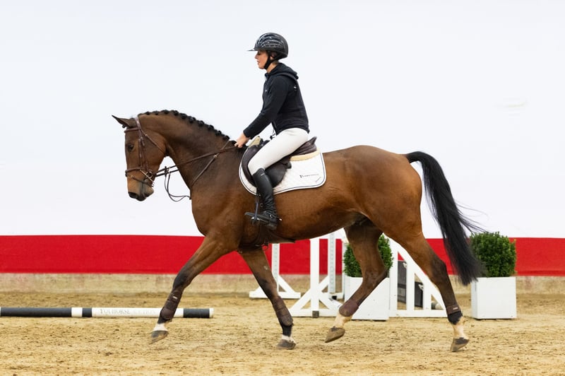 Wat een fantastisch mooi model heeft deze vierjarige Ruby BH. Hij springt goed van de grond, mooi met de schoft omhoog en heeft een goede achterhand techniek. Hij heeft nog weinig gesprongen onder het zadel, maar gezien zijn bouw zal hij later comfortabel te rijden zijn. Vader L’Extreme BH (1.35m springen) is een zoon van de 1.50m springmerrie Shou d’Ouilly en kleinzoon van de 1.55m GP-merrie Osiris d’Ouilly. Moeder Klasissa BH (Baloubet du Rouet) is gefokt uit de volle zus van de 1.70m Grand Prix-hengst Verdi TN, waarmee Maikel van der Vleuten jarenlang meedraaide in de wereldtop. Deze Orisssa M gaf zelf het CCI4* eventingpaard Denver en een 1.30m en 1.45m springpaard.