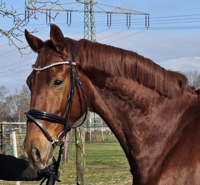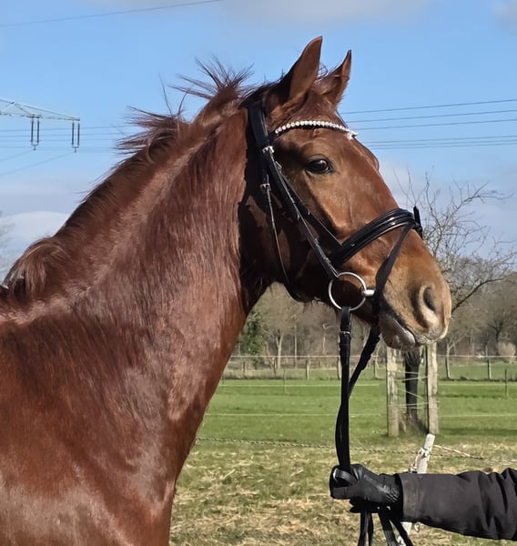 Sambucca Gold ist ein zurzeit 165 cm großer KWPN Wallach (wächst noch). Sambucca wurde vor kurzem schonend angeritten, vom ersten Tag an war er nur brav. Er hat noch nie einen falschen Schritt gemacht. Samucca hat viel Potenzial fürs Viereck, muss ja auch mit dieser tollen Abstammung. :-) Mütterlicherseits stammt er von Fürst Heinrich/Florestan ab. Sambucca hat 3 ausgezeichnete GGA, Videos versenden wir gerne über WhatsApp. Außerdem macht er einen sehr guten Freisprung. Sambucca ist ein toller Allrounder. Ideales Damen und Umsteigerpferd. Ja einen aktuellen Tüv ohne Befunde hat er ebenfalls. Für noch mehr Infos, freuen wir uns auf Anrufe unter: 0177/2721831.