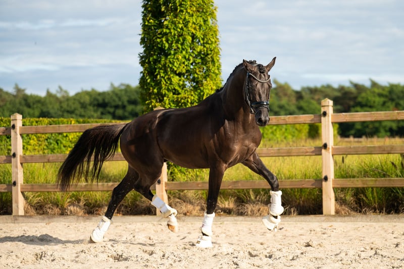 Elegant KWPN Gelding for Sale Neptune is a black KWPN gelding born in 2022, by Nashville Star x Kaiser Milton, standing approximately 167 cm. He is the kind of horse that doesn’t need exaggerated promises - his quality becomes clear the moment you meet him. He combines athletic ability with an exceptionally good mind. Neptune is very easy in daily handling, calm in the stable, uncomplicated to work with, and shows a genuine willingness to cooperate. He has no stable vices and presents a balanced, mature attitude well beyond his age. Modern in type and correctly built, he offers a natural elegance and an athletic frame that make him an exciting prospect for dressage. Everything about him feels logical and straightforward - a horse that gives confidence, not pressure, and allows his rider to focus on development and enjoyment. Neptune has passed an excellent veterinary examination, including crystal-clear X-rays and a very good clinical evaluation, making him a transparent and safe investment for the future. A young gelding for riders who value rideability, character, and long-term potential just as much as talent. 📍 Located in Postel, Belgium 📩 Contact us for more information or to arrange a viewing. What's Up: +372 56797925 - Veronika Liiv Email: nikaliiv2505@gmail.com