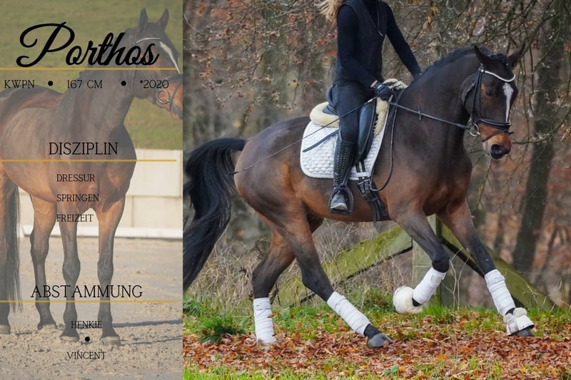 Prothos is a stunning 2020 KWPN gelding approximately 16.1 hh, sired by Henkie, with Alexandro P x Vincent, Zaire as dam lines. *Prothos* is a truly impressive horse. He is very expressive in movement and has an exceptionally clear mind. An extraordinary horse that brings genuine joy. He has three very good gaits. Not hot-tempered, he also forgives rider mistakes. Ready to excel in dressage competitions, he already has some show experience. He is comfortable both alone and in a group when hacking out. He is completely honest and simply wants to please. You can always feel safe on him, making him suitable for nervous riders and young riders alike. Porthos is a real pleasure in everything he does. !!! BE SURE TO WATCH HIS VIDEO !!! He is people-oriented and affectionate. A dream horse that leaves nothing to be desired for both sport and leisure riding. He already comes with a current large pre-purchase exam (AKU). A recent video can be found in the listing or at the following link: https://www.youtube.com/watch?v=N2Nt21CkiKU Horse dealership Dederichs – Your partner for horse buying Contact & Availability: Inquiries only by phone at 0173/9792139 Monday – Friday: 9:00 AM – 6:00 PM Saturday: 9:00 AM – 3:00 PM Sunday: Closed Follow us on social media! Experience our daily work with sale horses on Instagram, TikTok & Facebook under Pferdehandlung Dederichs Discount: Immediate purchase of your new dream horse grants a 5 %– 10 % discount Trial riding & demonstrations: • Trial ride: €30 per horse (up to 2 riders), amount credited upon purchase • Holidays: Trial ride €50 • Demonstration by our grooms: €25 per horse (pre-riding, ground work, etc.) Pre-purchase examination & transport: • Many of our horses already have an AKU • You are welcome to bring your own veterinarian • We can arrange an examination for you • We also assist with transport to your new home Other horses for sale: We have additional horses not yet listed online. If your dream horse isn’t here, please don’t hesitate to contact us. Important notes: • Height measurements are approximate and not precisely taken • All descriptions are subjective assessments by the seller and do not constitute guaranteed properties Further information at: www.Pferdehandlung-Dederichs.de