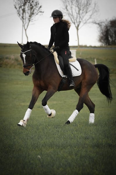 Prothos est un hongre KWPN né en 2020, mesurant environ 1,67 m, par Henkie, Alexandro P x Vincent, Zaire. *Prothos* est un cheval exceptionnel. Très expressif dans ses mouvements et doté d’un mental clair et équilibré. Un cheval hors du commun qui procure un réel plaisir. Il possède trois allures particulièrement bonnes. Ce n’est pas un cheval chaud, il pardonne aussi les erreurs du cavalier. Prêt à briller en dressage lors de concours, il a déjà une expérience en compétition. Il se déplace aussi bien en solo qu’en groupe en extérieur. Il est totalement sincère et souhaite simplement faire plaisir. Avec lui, on se sent toujours en sécurité, ce qui le rend idéal pour les cavaliers débutants ou plus craintifs ainsi que pour les jeunes. Porthos est un véritable plaisir dans toutes les activités. !!! NE PAS OUBLIER DE REGARDER SA VIDÉO !!! Très affectueux et câlin, il est le cheval de rêve qui ne laisse aucun souhait insatisfait, aussi bien pour le sport que pour la détente. Il possède déjà une récente et complète échographie de contrôle (AKU). Vous pouvez voir une vidéo récente dans l’annonce ou via le lien suivant : https://www.youtube.com/watch?v=N2Nt21CkiKU Écurie Dederichs – Votre partenaire pour l’achat de chevaux Contact & disponibilité : Veuillez uniquement contacter par téléphone au 0173/9792139 Lundi – Vendredi : 09h00 – 18h00 Samedi : 09h00 – 15h00 Dimanche : jour de repos Suivez-nous sur les réseaux sociaux ! Vivez notre quotidien avec nos chevaux en vente sur Instagram, TikTok & Facebook sous Écurie Dederichs Remise : Pour toute prise en charge immédiate de votre nouveau cheval de rêve, bénéficiez d’une réduction de 5 % à 10 %. Essai et présentation : • Essai : 30 € par cheval (max. 2 cavaliers), le montant sera déduit en cas d’achat • Jours fériés : essai à 50 € • Présentation par nos cavaliers : 25 € par cheval (montée, travail à pied, etc.) Examen vétérinaire et transport : • Beaucoup de nos chevaux disposent déjà d’une AKU récente • Vous pouvez bien entendu faire venir votre vétérinaire habituel • Nous organisons volontiers l’examen vétérinaire • Nous vous aidons également à organiser le transport vers votre nouveau domicile Autres chevaux en vente : D’autres chevaux sont disponibles dans notre élevage, mais ne sont pas encore en ligne. Si votre cheval de rêve n’est pas encore listé, n’hésitez pas à nous contacter. Informations importantes : • La taille approximative est donnée à titre indicatif et n’a pas été mesurée précisément • Toutes les descriptions sont des appréciations subjectives du vendeur et ne constituent pas des garanties Pour plus d’informations, consultez : www.Pferdehandlung-Dederichs.de