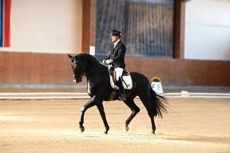 Op concours op DPA-niveau gepresenteerd, met scores tot 9,0! Maar hij kan al veel meer: hij maakt zijgangen, is zeer verzamingsbereid, voert vliegende wissels en pirouettes aan, en passage en piaffe gaan hem ongelooflijk gemakkelijk af, bijna alsof hij het al altijd heeft gekund. In omgang en onder het zadel is hij een absolute betrouwbare partner – heel makkelijk te rijden, altijd geconcentreerd en nooit met slechte manieren. Zijn leergierigheid is indrukwekkend; zelden hadden we zo'n snel lerend en gemotiveerd jong paard in training. Voor ons is hij een duidelijke kandidaat voor de top – een toekomstige Grand Prix-ruiter met uitzonderlijk potentieel.