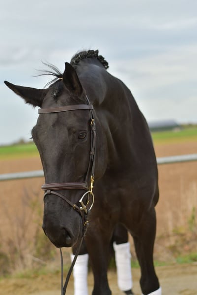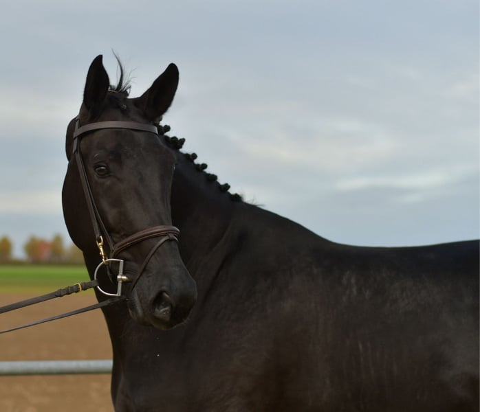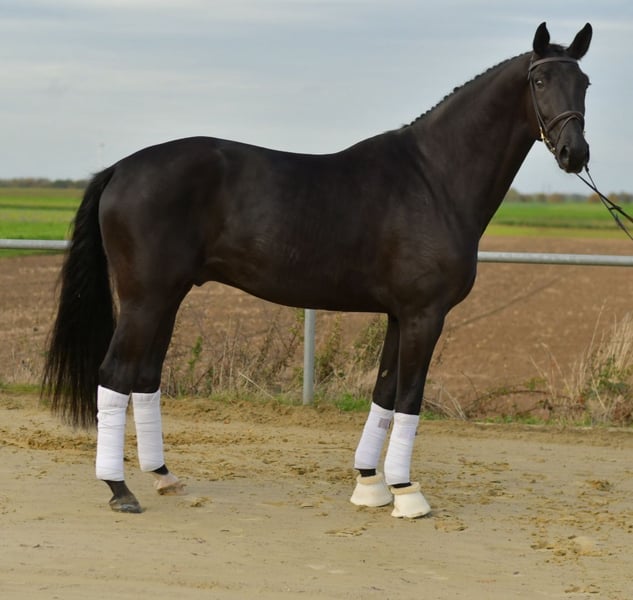 **Verkaufstext für den lackschwarzen Pole Position** Entdecken Sie mit Pole Position Ihr neues Traumpferd! Dieser beeindruckende Nachkomme des GLOCK'S TOTO JR. und dem legendären Opa Totilas besticht nicht nur durch seine atemberaubende Lackschwarze Färbung, sondern auch durch seine herausragenden Gangarten, die überdurchschnittlich gut sind. Mit einer Größe von ca. 1,76 m und erst 5 Jahren ist er der Inbegriff eines Bilderbuchpferdes. Pole Position steht am Anfang seiner Ausbildung und ist bereit, mit etwas Arbeit sofort in der Dressurpferde L gestartet zu werden. Er überzeugt nicht nur durch sein Potenzial, sondern auch durch einen vollständigen TÜV ohne Befund – ein echtes Traumpferd für jeden Reiter! Für alle, die auf der Suche nach einem bildschönen Pferd sind, das sowohl im Training als auch im Wettkampf glänzen kann, ist Pole Position die perfekte Wahl. Gerne können Sie ihn probereiten oder sich vorreiten lassen – dies Kostet 50 € und wird selbstverständlich beim Kauf zurückerstattet. Wenn Sie den idealen Partner für das große Viereck suchen, dann sind Sie hier genau richtig. Lassen Sie sich von Pole Position verzaubern und erleben Sie die Möglichkeiten, die er Ihnen bietet!