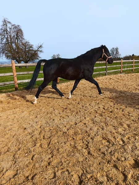 Gut angerittener KWPN Wallach zum selber weiter ausbilden. Longieren und Bodenarbeit macht er sehr gerne. Wir waren zu zweit ein paar mal im Gelände und er war sehr brav. Muss noch viel lernen. Verträgt sich gut mit anderen Pferden. Ist Barhuf unterwegs. Passende Hufschuhe sind vorhanden.