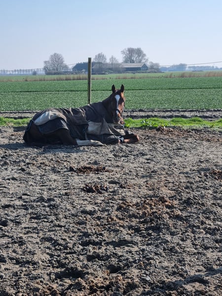 Oliver is een 6 jarige ruim van FERGUSON X AMAZING STAR en heeft een stokmaat van 1.68 Hij kan erg leuke bewegen en met de geschikte ruiter, zeker een talent voor de sport, hij beschikt over 3 correcte gangen. Het is een werklustige en leergierige ruin die op zoek is naar een duidelijke en zelfverzekerde ruiter die hem alles kan/wil leren (hij wordt niet spannend onder het zadel, maar heeft wel wat overtuiging nodig, uit zich in stil staan en achteruit lopen bij spannende omstandigheden). Op dit moment wordt hij getraind op L1,L2 niveau. Braaf in de hand. Braaf bij de smid en dierenarts. Ontwormen, tanden en entingen allemaal netjes op orde. Hij is sociaal naar andere paarden. Het is een paard wat spanning opbouwt bij veranderingen, voornamelijk op stal, dit uit hij door te weven kort maar krachtig en het is dan ook direct weer over wanneer de situatie weer “normaal” is (denk aan harde geluiden, nieuwe paarden op stal, veel onrust/ druktes op stal). Momenteel staat hij op een kleinschalige pensionstal en dan is het prima onder controle. Daarom zoek ik voor hem een stabiele omgeving. Het is een luchtzuiger, alleen op zijn voorbak en tijdens en kort na het eten (verder niet). Dit is tevens niet de rede van de verkoop. Ik ben zelf niet zeker genoeg om het onder het zadel te overtuigen, wat ten kosten gaat van zijn kwaliteit en mijn plezier. Hij heeft een kleine röntgenologische bemerking. Paard heeft hier geen klinische klachten van en is goed gekeurd voor de sport Keuren mag, kosten koper. Filmpje op aanvraag. Voor meer informatie stuur gerust een berichtje via whatsapp.