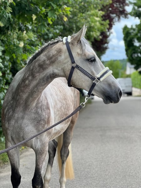 A dream horse for everyone! This now 6yo gelding by Cellestial x Vingino x Heartbreaker already has a lot of experience and is super brave and easy to ride. He has already won 10 times young horses class up to 1.20m and was many times placed. He is very comfortable to ride on the flat and has safe automatic lead changes. He is a pleasure to work with every day and has enough scope for a future GP showjumper, but is also easy enough for every amateur. Also suitable as a Hunter or Equitation horse. Out of the same dam are already two 1.50m showjumpers. Height is around 16.2.