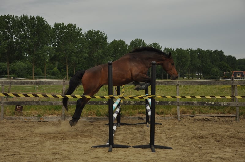 Macho is een echt gezinspaard wat onwijs van aandacht houd. Hij gaat graag mee op pad, zowel op wedstrijden als op buitenritten. Macho kent de oefeningen tot het L2 dressuur en is voorheen uitgebracht in de 100cm springen. Ook heeft Macho wat cross-trainingen gedaan wat hij erg leuk vind. Macho is bombproof, hij kijkt eigenlijk nergens van op of om. Dit zou hem ook geschikt maken voor de overgang van pony naar paard. Hij is alleen niet geschikt voor de echte beginners. Macho gaat alleen weg naar een 5-sterrenhuis waar hij veel buiten komt. Hij is erg sociaal, gewend om in een kudde te staan en voelt zich daar goed bij. Zijn hele historie is bekend: wij hebben Macho gekocht van mensen met wie we nog steeds goed contact hebben, en zij hebben hem rechtstreeks van de fokker. De reden van verkoop is dat mijn ambities niet in de sport liggen, terwijl Macho juist die uitdaging wél zoekt. Macho is altijd netjes op tijd geënt, naar de tandarts geweest, behandeld door de osteopaat en naar de hoefsmid geweest. Dit doet hij allemaal braaf en zonder problemen. Macho heeft geen stal gebreken en is makkelijk te laden op de trailer/vrachtwagen. Macho is in november 2023 klinisch en röntgenologisch (inclusief hals en rug) volledig goedgekeurd voor de sport. Herkeuren mag k.k. De vraagprijs voor Macho is 19.500 euro. Dit is bij het juiste huisje bespreekbaar. Bij vragen of serieuze interesse ben ik te bereiken op dit telefoonnummer: 06-21180946. Handelaren en maneges hoeven niet te reageren.