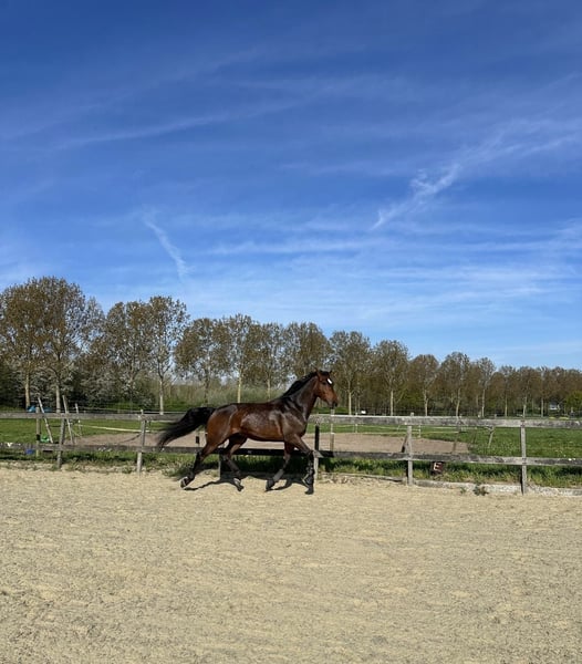 Macho is a true family horse that loves attention. He enjoys going on rides, whether at competitions or on trail rides. Macho is trained up to L2 dressage and has previous experience in 100 cm show jumping. He has also done some cross-training, which he finds very enjoyable. Macho is bombproof; he is unfazed by almost everything and would be suitable for transitioning from pony to horse. However, he is not suitable for complete beginners. Macho is only available to a five-star home where he can spend plenty of time outdoors. He is very social, used to being part of a herd, and feels comfortable there. His entire history is known: we bought Macho from people with whom we still maintain good contact, and they purchased him directly from the breeder. The reason for selling is that my ambitions do not lie in competitive sport, whereas Macho is eager for that challenge. Macho is always vaccinated on time, has been to the dentist, treated by the osteopath, and attended to by the farrier. He handles all these procedures well and without issues. Macho has no stable vices and is easy to load onto a trailer or truck. In November 2023, he was fully approved for sport through clinical and radiological examinations (including neck and back). Re-approval is possible upon request. The asking price for Macho is €19,500. This is negotiable for the right home. For questions or serious interest, please contact me at: 06-21180946. Dealers and riding schools are kindly asked not to respond.