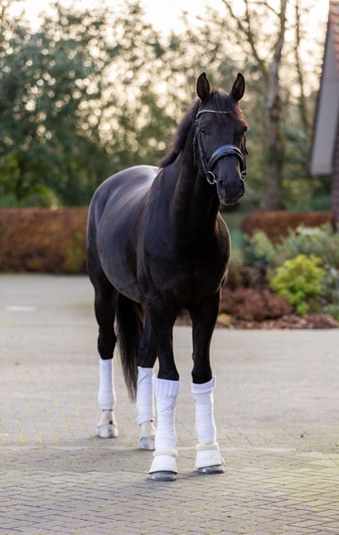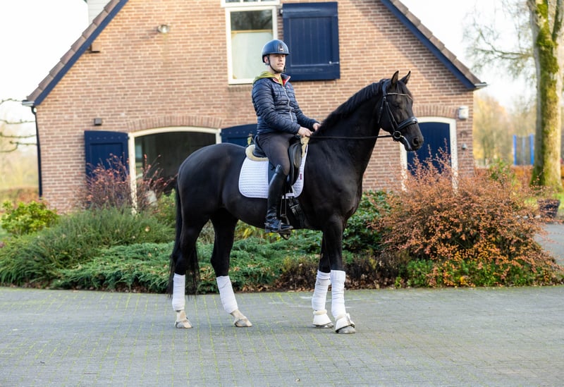 Black KWPN gelding, 1.71 m, born in 2020, by the impressive Grand Prix stallion Imposantos. Ideal for a dedicated amateur rider who enjoys arena work as well as long hacks in the forest—alone and/or in company (which he truly loves and behaves impeccably during)—or for a professional rider looking to develop a quality horse for the long term. He has three good gaits and shows excellent talent for the future. He is already working on counter canter, shoulder-in, leg yields, and is beginning to play with flying changes. He is extremely affectionate, loves human attention, and greets everyone with plenty of kisses. He is very easy and pleasant to handle, enjoys long grooming sessions, loves socializing with other horses, travels calmly, and adapts quickly to new environments. Price: negotiable and well below his value for a quick and urgent sale due to more horses coming into training. A loving and suitable home is the priority. Location: Nijkerk Please contact at any time by WhatsApp: +971545594319 or email: Sharleen.liebenow@gmail.com