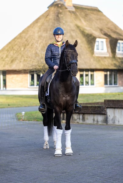 KANS: Onder de marktwaarde! Zwarte KWPN-ruin, 1,71 m, geboren in 2020, afstamming van de indrukwekkende Grand Prix-hengst Imposantos. Ideaal voor een amateurruiter die zowel de dressuurbaan als buitenritten in de natuur – solo en/of in gezelschap (wat hij zeer waardeert en zich voorbeeldig gedraagt) – wil maken, maar ook voor een professionele ruiter die een paard op lange termijn wil ontwikkelen. Hij beschikt over drie goede basisgangen en toont al veel talent voor de toekomst. Hij werkt al aan buitenwaartse galop, schouder-in, schouderherein en begint speels aan het trainen van vliegende wissels. Hij is zeer knuffelig, houdt van menselijke aandacht en begroet iedereen met veel liefde. Hij is uiterst gemakkelijk in de omgang, geniet van poetsen, houdt van contact met andere paarden, reist rustig en gemakkelijk en past zich snel aan nieuwe omgevingen aan. Prijs: onderhandelbaar en aanzienlijk onder de marktwaarde voor een snelle en dringende verkoop vanwege andere paarden die in training komen. Een liefdevol thuis heeft prioriteit. Locatie: Nijkerk Voor meer informatie graag contact via WhatsApp: +971545594319 of per e-mail: Sharleen.liebenow@gmail.com