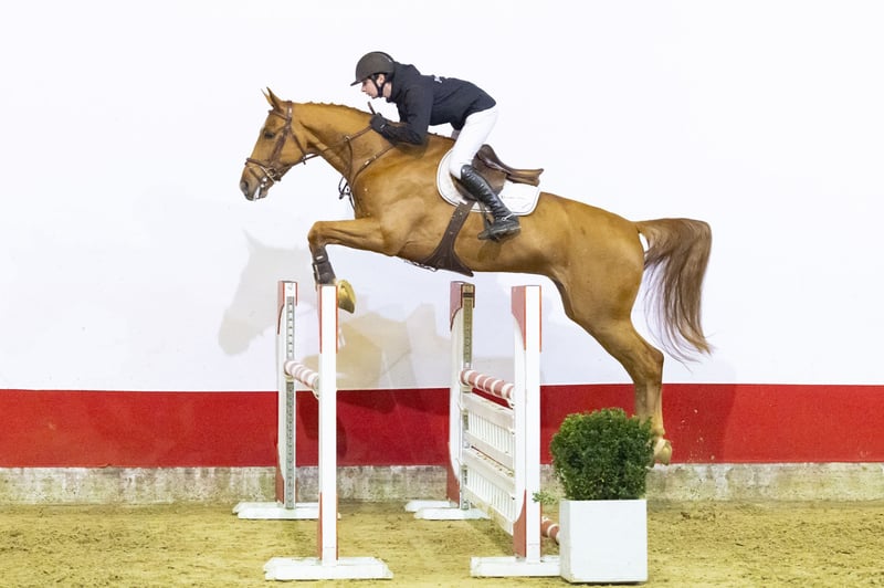A horse that immediately stands out because of her light-footedness. She shows very strong hindleg technique and moves easily. She almost jumps like a thoroughbred: extremely quick off the ground with natural blood and reflexes at the fence. Shows easy scope and strong commitment. A horse with clear overview and conviction in her jumping. She already has 1.20m experience, confirming her solid sport foundation. A modern sport horse with balance, technique and scope.