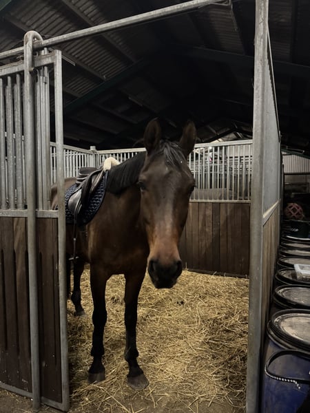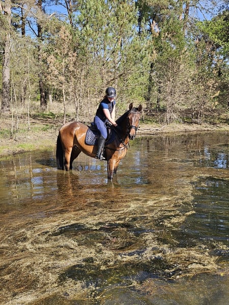 Orkan is a gentle horse with a calm temperament. He is sensitive and can sometimes be a bit nervous, often preferring to size things up before fully trusting. With the right connection and confidence, he is a very sweet and honest horse.