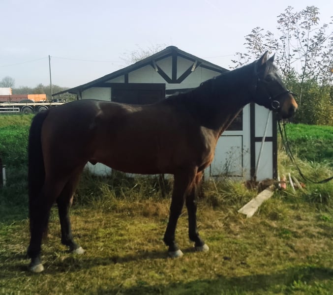 In vendita un castrone di 6 anni, figlio di Glamourdale, noto per le sue qualità da dressage, da una fattrice di Contango X Jazz. Owendale possiede tre ottimi gga, con particolare risalto alla sua spaziosa andatura galoppata. È stato educato con metodo gentile (con pause prolungate al pascolo – chiaramente per motivi di tempo, non a causa di problemi di salute!) ed è attualmente montato a livello di cavallo di livello A, inoltre salta anche un piccolo percorso con grande entusiasmo. In campagna si comporta molto bene, le uscite in gruppo più numeroso non rappresentano un problema. Sono disponibili radiografie, tutte prive di anomalie che limiterebbero il suo utilizzo come cavallo da dressage o da competizione. Per informazioni, si prega di contattare telefonicamente o via WhatsApp al 015736343268.