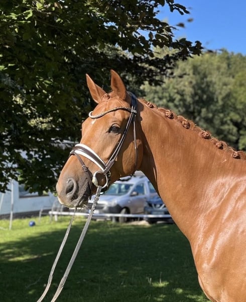New Jersey ⭐️ Guardian - Crack C New Jersey ist ein 7-jähriger, 1,72cm großer Wallach in wunderschöner Fuchsfarbe, der für jeden Spaß zu haben ist. Jersey befindet sich seit kurzem in professioneller Ausbildung und wurde vorher freizeitmässig geritten. Er ist ausgesprochen lieb und unerschrocken, geht allein sowie in der Gruppe ins Gelände. Er befindet sich nun auf solidem A-L Niveau. Aussengalopp, fliegende Wechsel und Seitwärts haben wir spielerisch begonnen ✔️. Aufgrund seiner ruhigen und ausgeglichenen Art ist dieser Wallach ebenso für den ambitionierten Reiter als auch für den ängstlichen oder unsicheren Reiter geeignet! Mit seinen drei ausgesprochen guten Grundgangarten und seiner hervorragenden Arbeitseinstellung stehen ihm bei entsprechender Ausbildung alle Möglichkeiten für den großen Sport offen. Abgerundet mit einem Top Tüv empfiehlt sich hier ein gesundes, kopfklares Pferd für den Dressurreiter als auch für den ambitionierten Freizeitreiter. Weitere Infos unter 0172-1856756. Standort 24241 Schierensee.