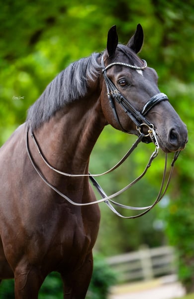 7-jähriges Reitpferd, Furstenlook x Negro, ca. 1,70 m groß. Sehr freundliches und zuverlässiges Wesen. Z2-klassifiziert im Turnier und in der Ausbildung in Richtung Prix St. Georges. Perfekt für einen Junior oder Young Rider!