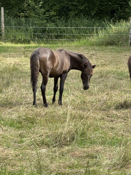 **Sales Advertisement: Lewitzer Stallion** For sale is a promising Lewitzer stallion, born in 2025. This dark brown young horse will reach a height of approximately 140 cm. Our stallion impresses with his excellent movements, friendly nature, and willingness to learn. He is suitable for both leisure and competition sports and will surely win the heart of every horse lover. He is well-mannered, accustomed to being with other horses, and is gentle in handling. No illnesses are known. Sire: Shayan Dam: Anni Grandsire: Schnick-Schnack If you are interested or have any further questions, we look forward to your message!
