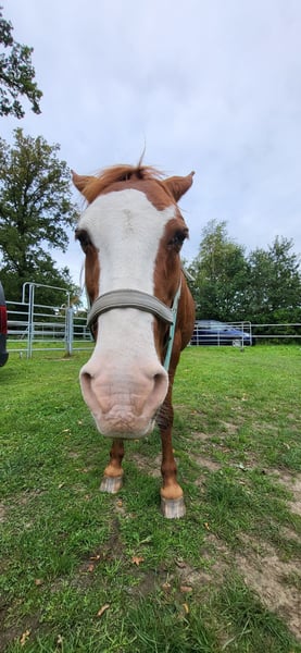 Certainly! Please find the English translation below: --- I am happy to send pictures; unfortunately, uploading doesn’t seem to work... My sweet, people-oriented Lewitzer mare, Eisfee (call name: Letty), is looking for a new home. She is 18 years old and stands 1.39 meters tall. She was previously driven in a carriage (I’ve never tried it) and had a beautiful stallion foal in 2019. She is registered in the Main Stud Book (Stutbuch I). Unfortunately, I don’t know much more about her past. I took her over about a year and a half ago with the idea of training her as a riding horse. I also hired a trainer, and we did a lot of ground work and lunging. She is accustomed to rider weight and carries a rider well in walk when led. However, she becomes a bit unsure once the person leading her steps away. She was intended to become a Western pony, as I believe she is better suited for relaxed riding styles. As soon as you pick up the reins, she becomes resistant. Unfortunately, I have to admit that we are not the right match, as I am not the most confident rider myself. Additionally, I am now too heavy for her. If someone can give her the confidence she needs, I am sure everything can be worked out well. She is a treasure from the ground and follows you everywhere. With clear instructions, liberty work also works wonderfully. I could also see her in breeding, as she is a lovely mare. She is a wonderful pony, and everyone loves her. She is well-behaved with the farrier (she is barefoot), the veterinarian, and loading. No issues there. Her teeth were recently checked in September. She received worming treatment last week. We started osteopathy in the summer, and there were no negative issues. Currently, she has a slight lameness due to a strain, but it is almost gone. I will only rehome her with a protective contract, to the best of hands. She also prefers an open stall system. Please prioritize a good home over price. --- Let me know if you'd like any adjustments or a version tailored to a specific audience!
