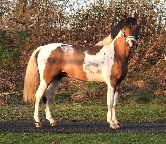 ❗️Due to the high volume of inquiries, we kindly ask for contact via phone only.❗️ For sale is a 2.5-year-old Lewitzer pony with a current height of approximately 1.38 meters. The pony was successfully presented to the licensing committee last week and comes from reputable breeding. He has a wonderfully gentle character and has always been groomed and led by children. He was kept in a paddock with other stallions and geldings until recently. The pony is easy to handle, loads calmly, and is already familiar with bridle and lunge line from the licensing preparation. We will not send videos of our horses without prior phone contact, so please refrain from requests like "please send a video." Viewings are possible at any time. For further questions, please feel free to call us at 0171 530 33 40. All rights to the images belong to Sport- und Freizeitpferde Wilfried Oestersandforth. Distribution or publication is strictly prohibited.